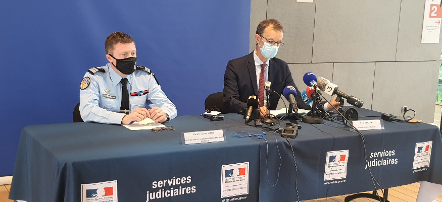 Le colonel Lionel James (à gauche), commandant de la section de recherches de la gendarmerie, et Eric Vaillant (à droite), procureur de Grenoble.