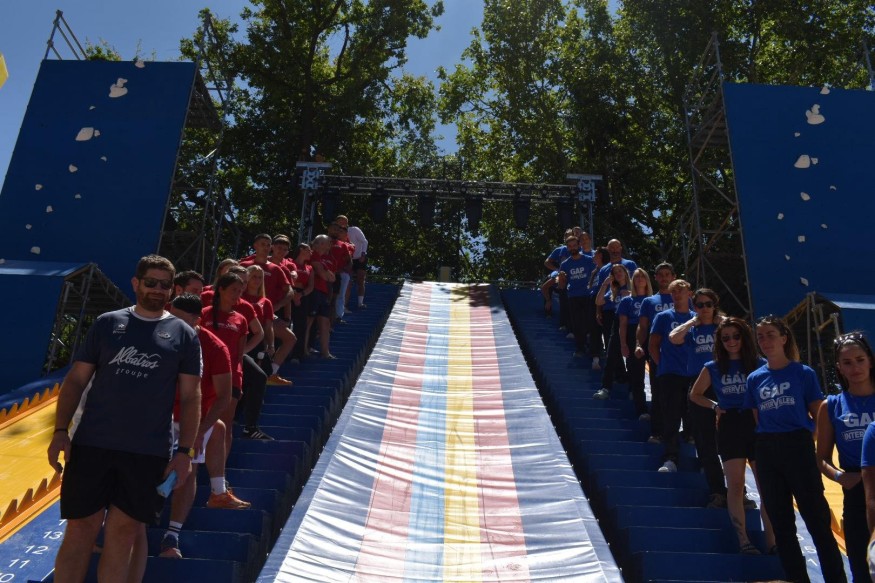 Après plusieurs défis, Bourgoin (en rouge) et Gap (en bleu) étaient au coude-à-coude 5 partout. Un peu plus compliqué après, 11 à 5 pour les Gapençais, avant de remonter à 18-14 pour Gap. Est venu alors l'épreuve légendaire, celle qui devait départager nos deux équipes : Le Mur des Champions. Remontada pour Bourgoin ?