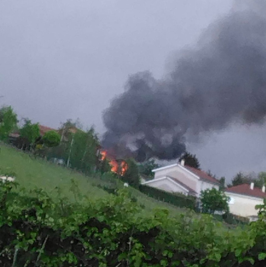Deux lances à eaux sont utilisées par les soldats du feu pour maitriser les flammes et éviter qu’elles ne se propagent à la maison voisine. Selon un premier bilan, l’incendie n’a fait aucun blessé.