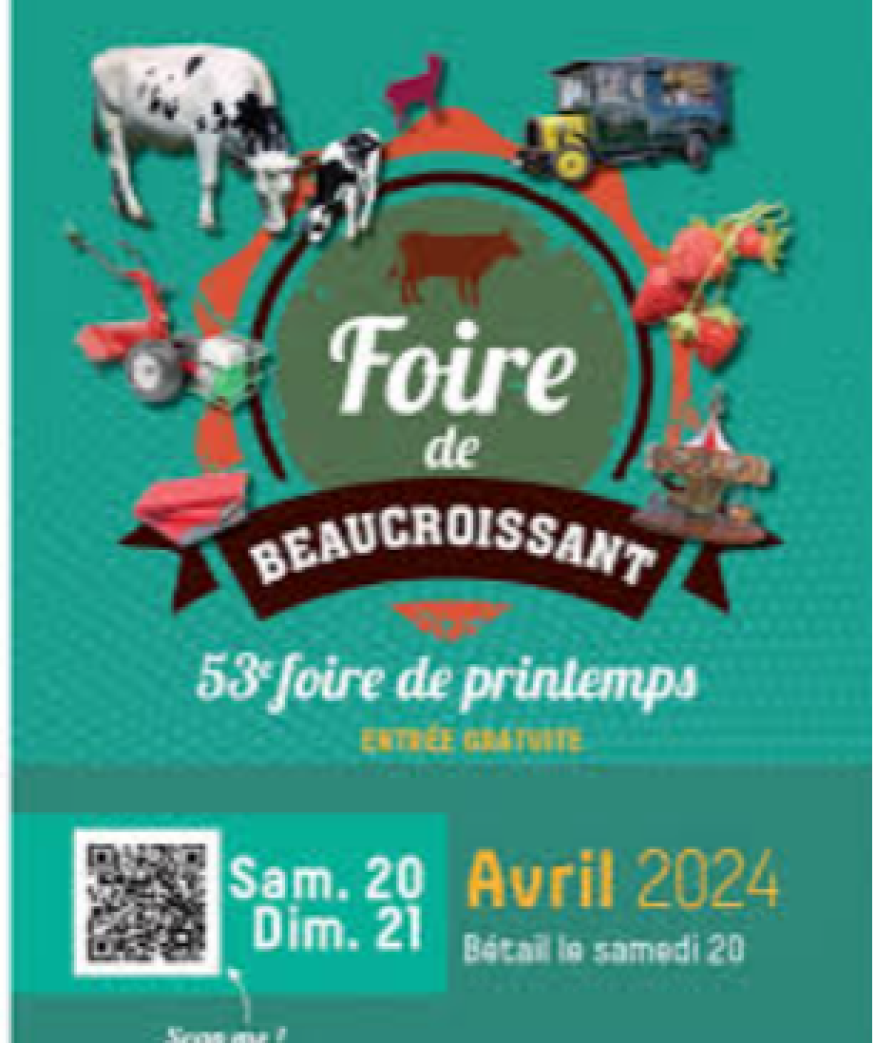 La Foire de Beaucroissant c'est le samedi 20 et dimanche 21 avril sans oublier les attractions foraines pour les enfants.