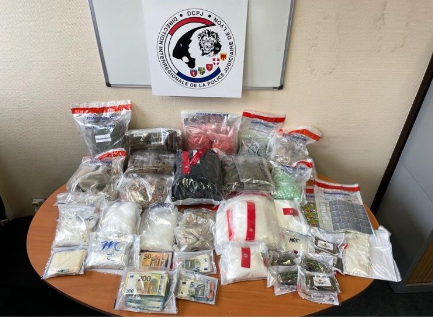 Lors de l’interpellation du Grenoblois à son domicile, la somme de 9345 euros a été saisie. Les enquêteurs ont également identifié un box, dans lequel était installé « un petit laboratoire de chimiste, avec près de 25 kilos de produits stupéfiants de diverses natures dont 5 kg de résine et 2,2 kg d’herbe de cannabis, 180 g d’héroïne, 110 g de cocaïne, 8 kg d'amphétamines et méthamphétamines, 5,7 kg de MDMA, 2,9 kg d’ecstasy, 1,6 kg de kétamine, 3 400 buvards LSD… ».
