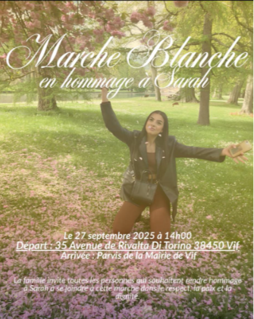 Une marche blanche ce samedi 27 septembre à 14h à Vif pour honorer la mémoire de Sarah.
