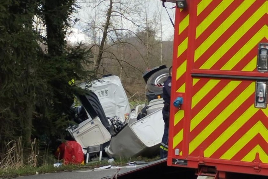 Un camion-citerne qui transportait du ciment, a fait une sortie de route sur la D1516 vers 11h50.