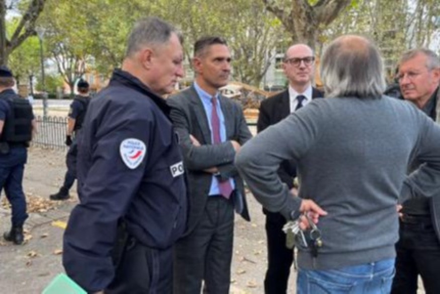 Le préfet de l'Isère (au centre), Louis Laugier, avec le procureur adjoint (à droite), François Touret de Coucy.