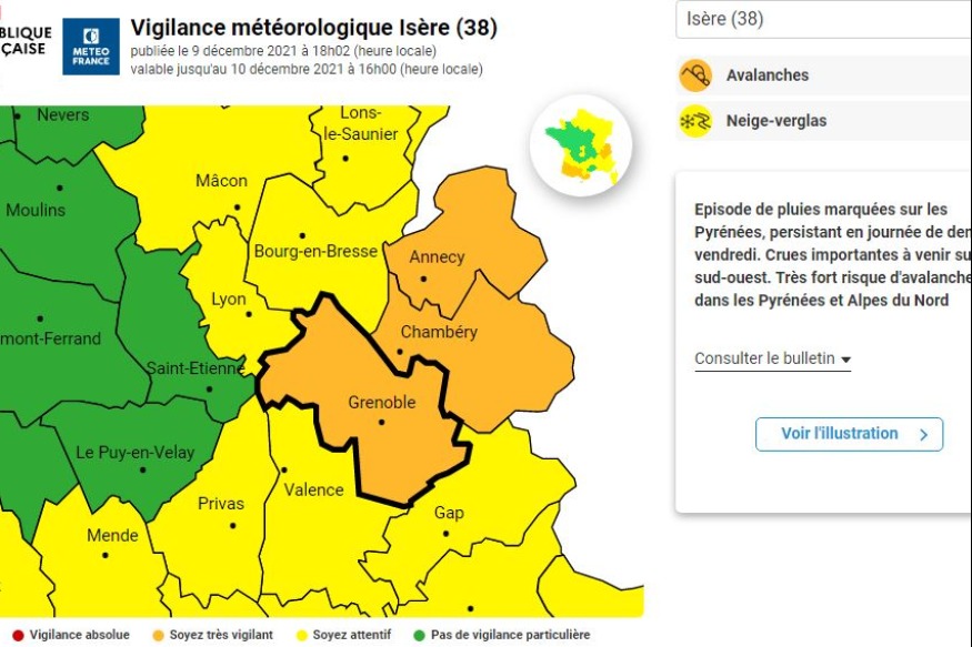 L’Isère est placée en vigilance orange à la neige, aux pluies et aux avalanches.