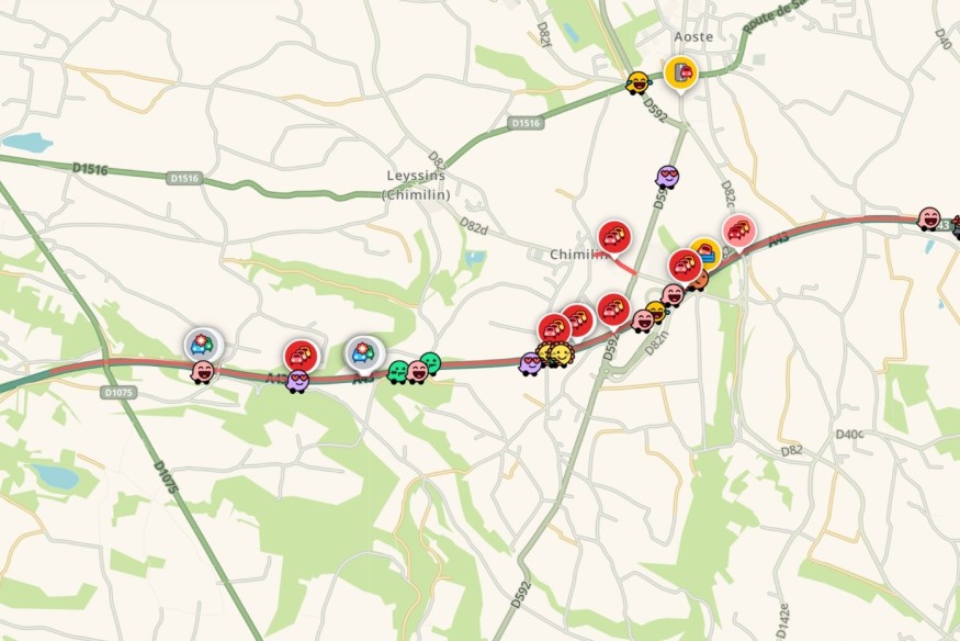La voie de droite et la bande d’arrêt d’urgence sont coupées à la circulation. Cela cause plus de 4kms de bouchons à partir de Romagnieu. AREA déconseille aux automobilistes de rentrer sur l’A43 par la bretelle numéro 11......