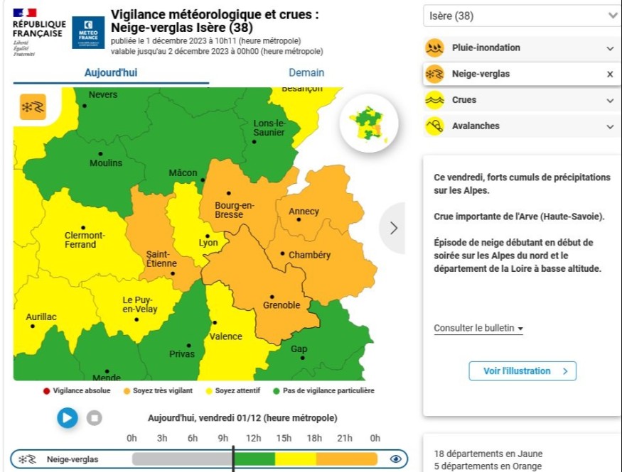 Après la vigilance orange pluie-inondation, l'Isère passe en vigilance orange neige-verglas.